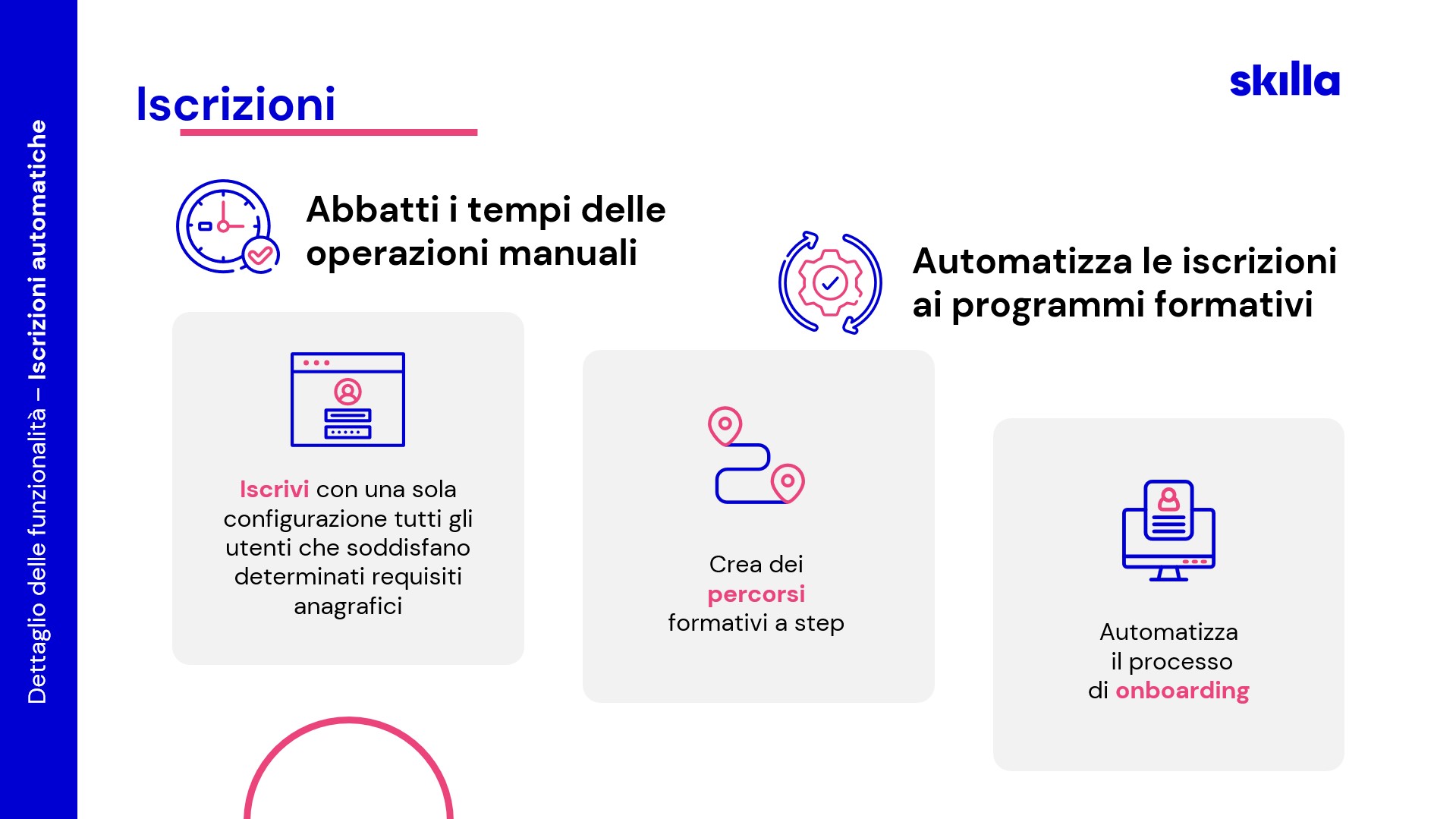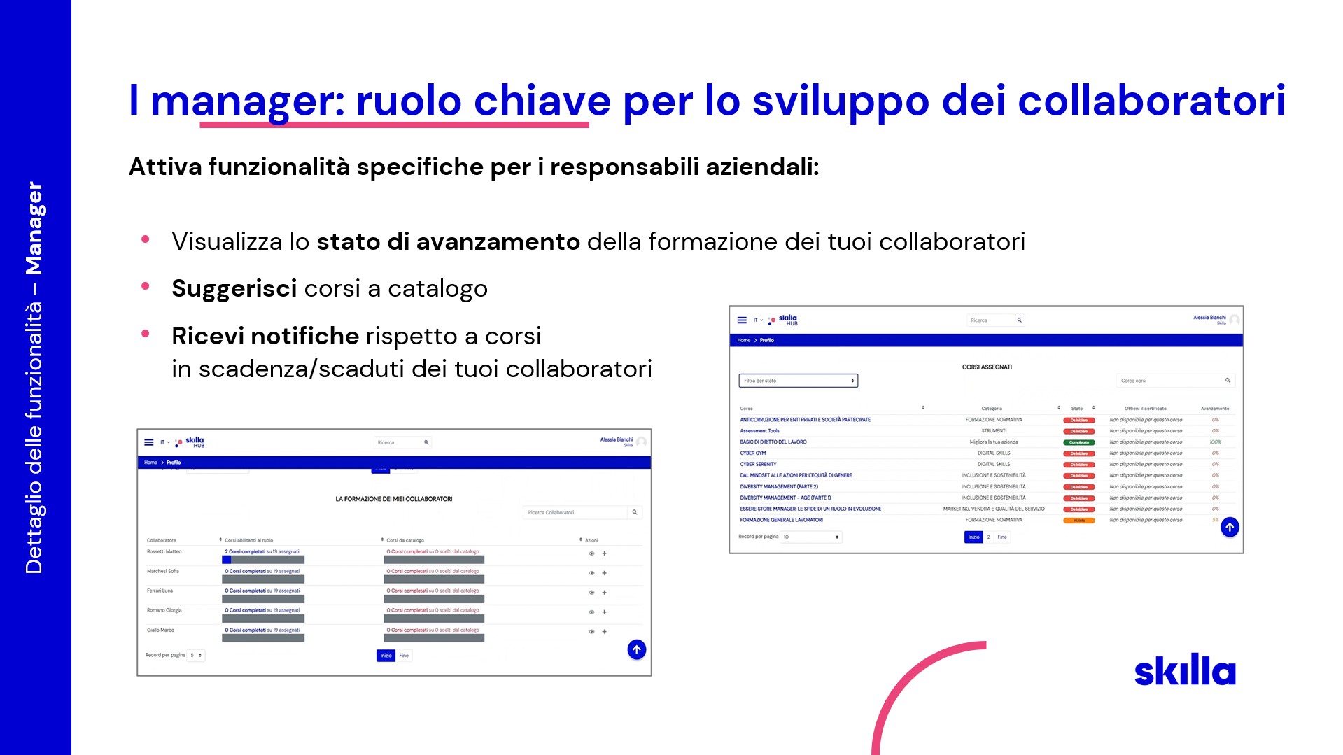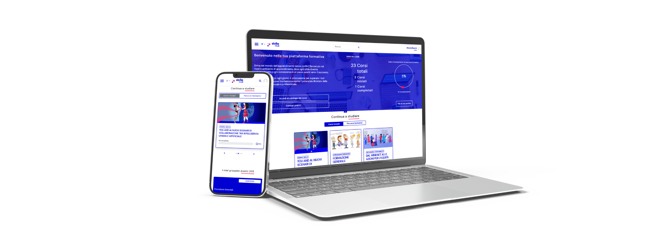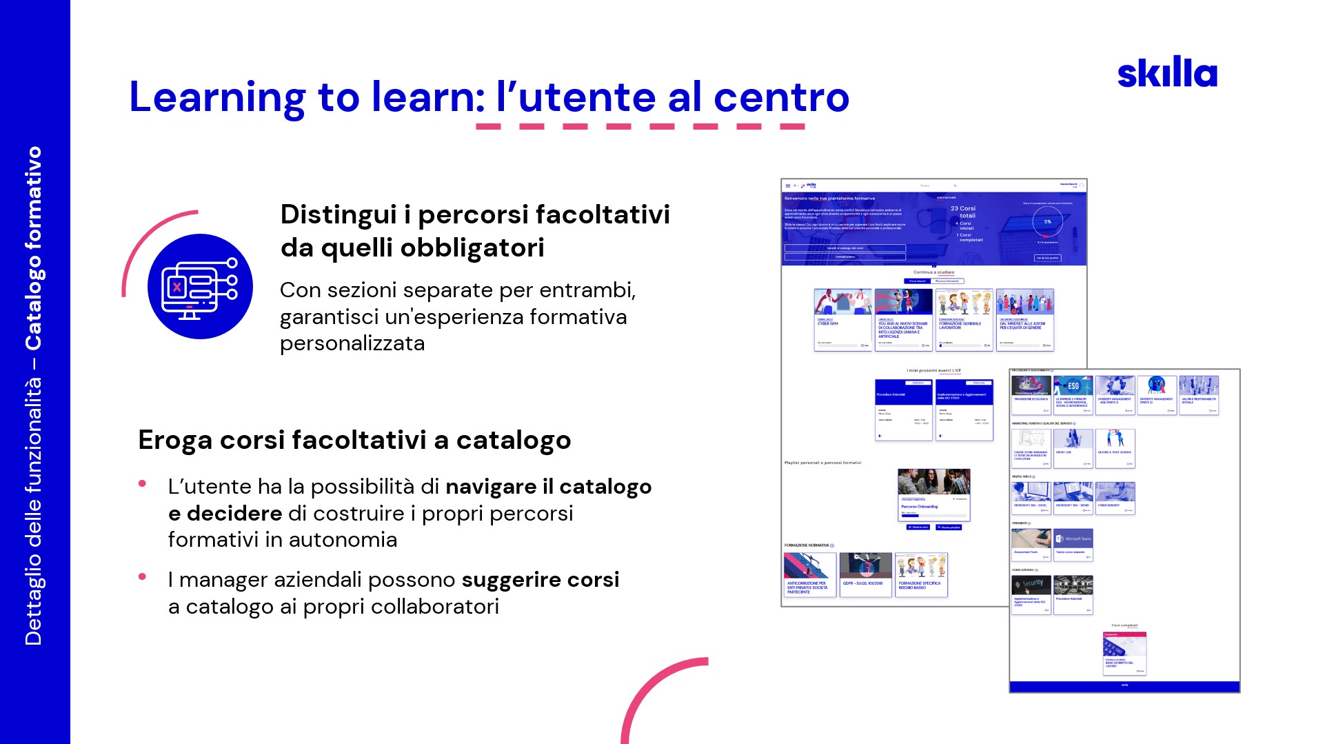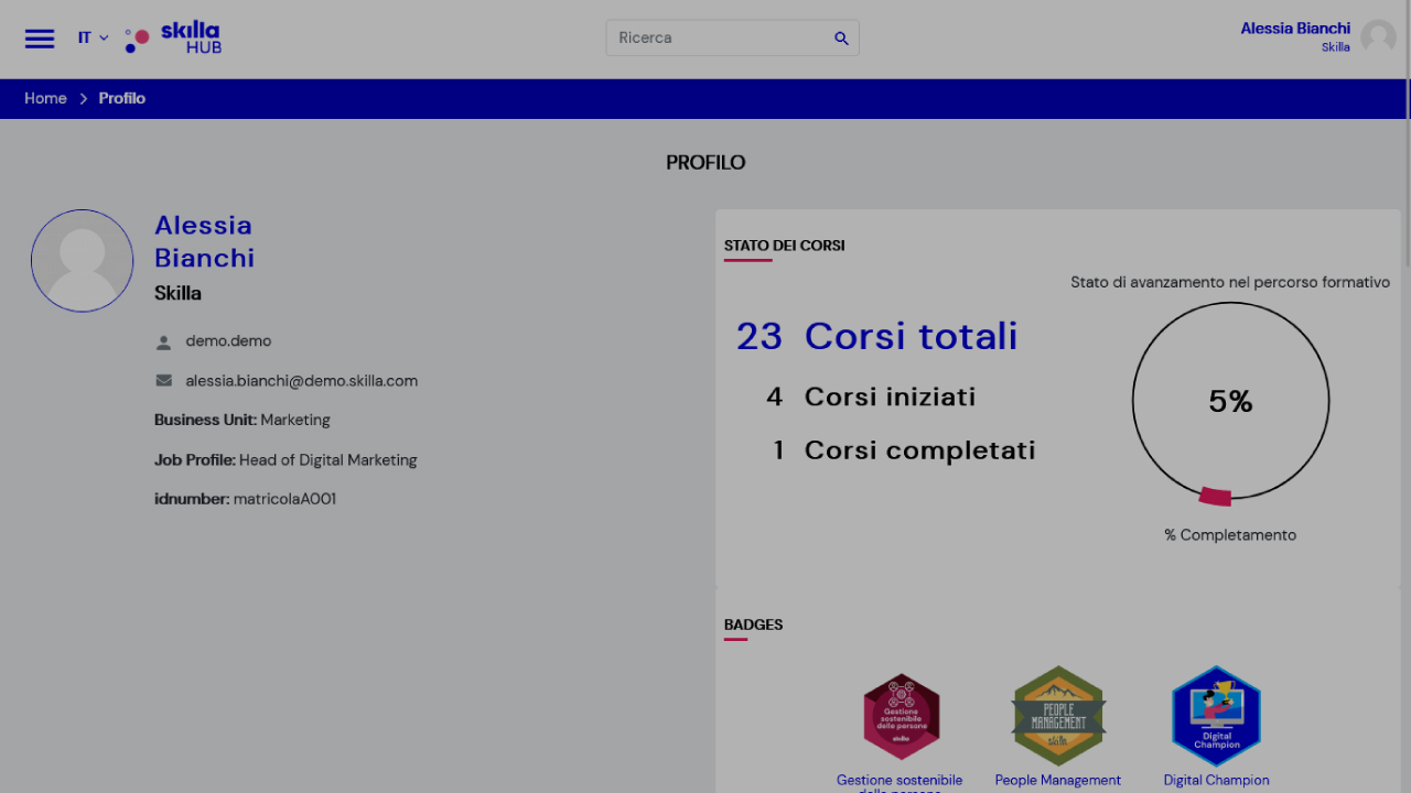 Skilla HUB è pensata per offrire al learner un’esperienza di apprendimento coinvolgente e per alleggerire il day by day di chi la gestisce.
