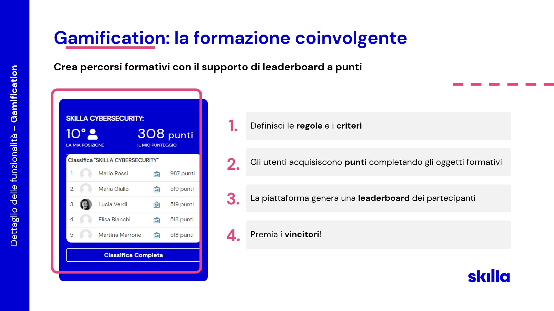 Si possono creare percorsi formativi con il supporto di leaderboard a punti in cui è possibile: