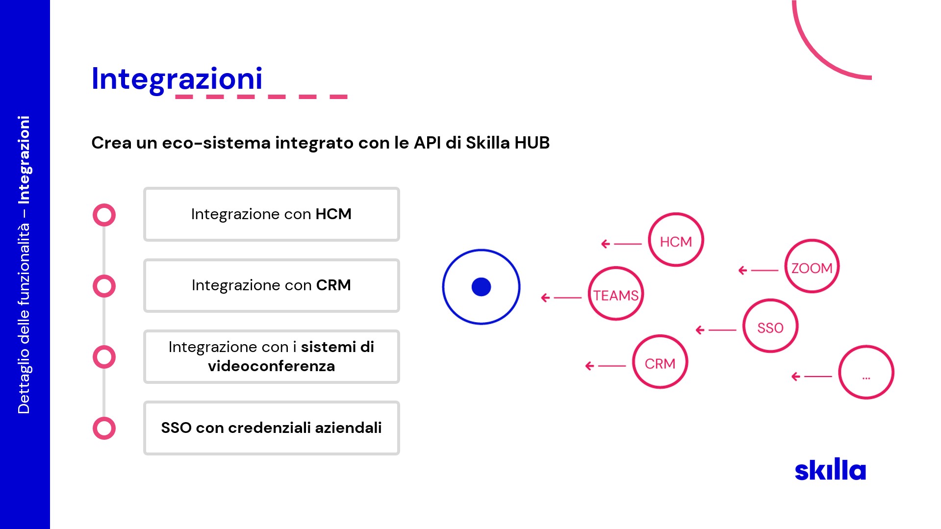 Sì, Skilla HUB dispone di servizi web predefiniti per l’integrazione con sistemi come HCM, CRM e Intranet aziendali.