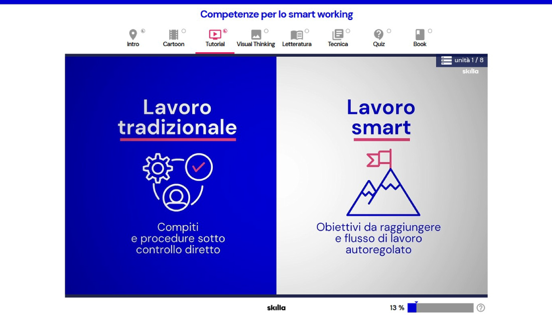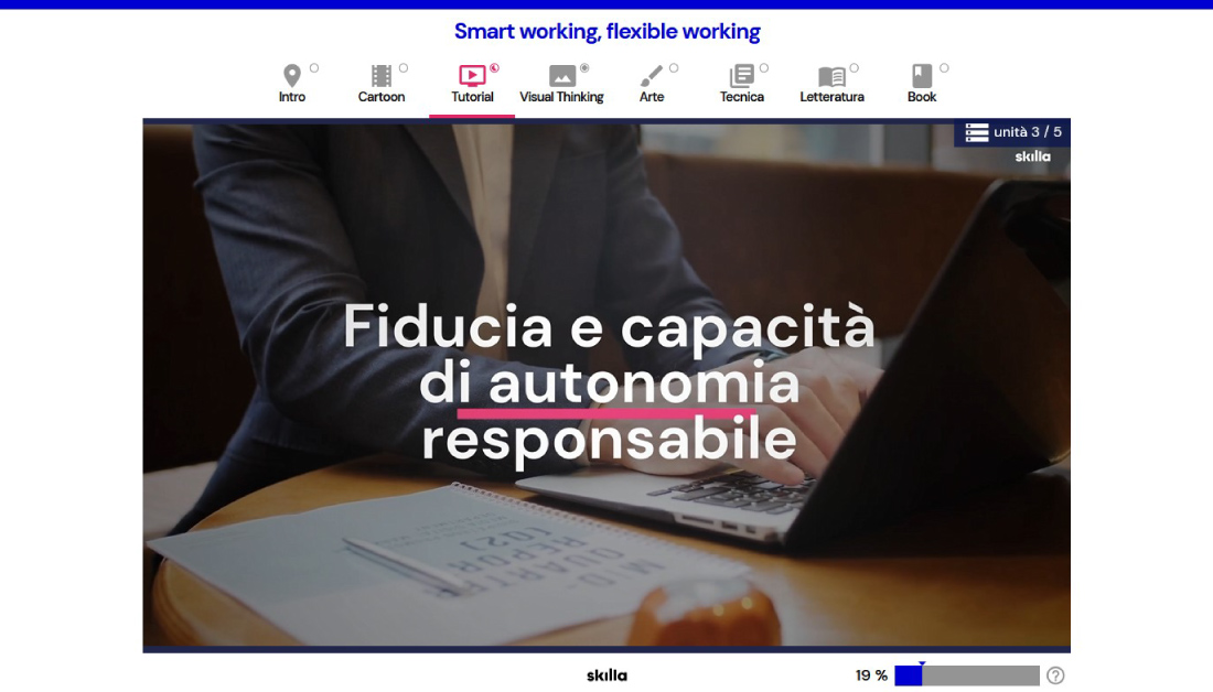 5 moduli per acquisire competenze relazionali, organizzative, digitali e per il benessere personale, necessarie per lavorare in smart working