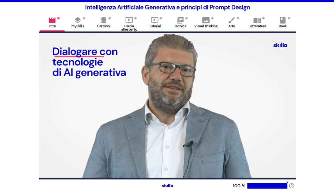 Grazie ai percorsi multimediali e/o in aula, potrai sviluppare le competenze per sfruttare in modo etico e responsabile le potenzialità dell’AI Generativa per migliorare e semplificare il tuo lavoro: